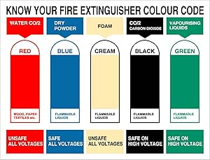 Fire Extinguisher Colour Codes Sign (300mm x 400mm ... from images-eu.ssl-images-amazon.com A) periodically inspecting each extinguisher; Selection of fire extinguishers there are a number of types of portable fire extinguishers available in australia. You can usually find them in hallways, laundry rooms, meeting rooms, kitchens, mechanical/electrical rooms, and near exit doors. Fire extinguishers are designed to tackle specific types of fire. This standard puts out a set of requirements related to portable extinguishers that are set up to be a first line of defense from a fire. An alternative method of extinguishing a class a fire is It is so important to know which fire extinguisher should be used depending on the fire source. Safety color code for marking physical hazards.